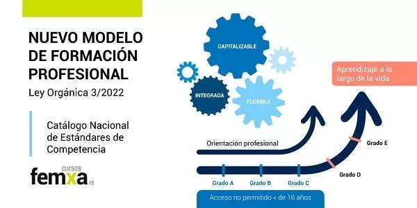 Con la nueva ordenación del sistema, la Formación Profesional se estructura en cinco grados o escalas formativas (A, B, C, D y E), que permiten avanzar de forma progresiva y flexible a lo largo de la vida profesional: